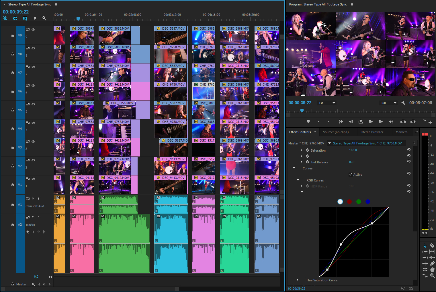 Much of the studio's recordings were recorded live, some bands preferred to lip-sync to pre-recorded tracks. Paul generally had bands perform their songs just once, maybe twice, for the four or five cameras, recording up to 6 songs for a demo video. In post production, Paul would mix the multi-tracked audio and cut the camera angles, all within Adobe Premiere.