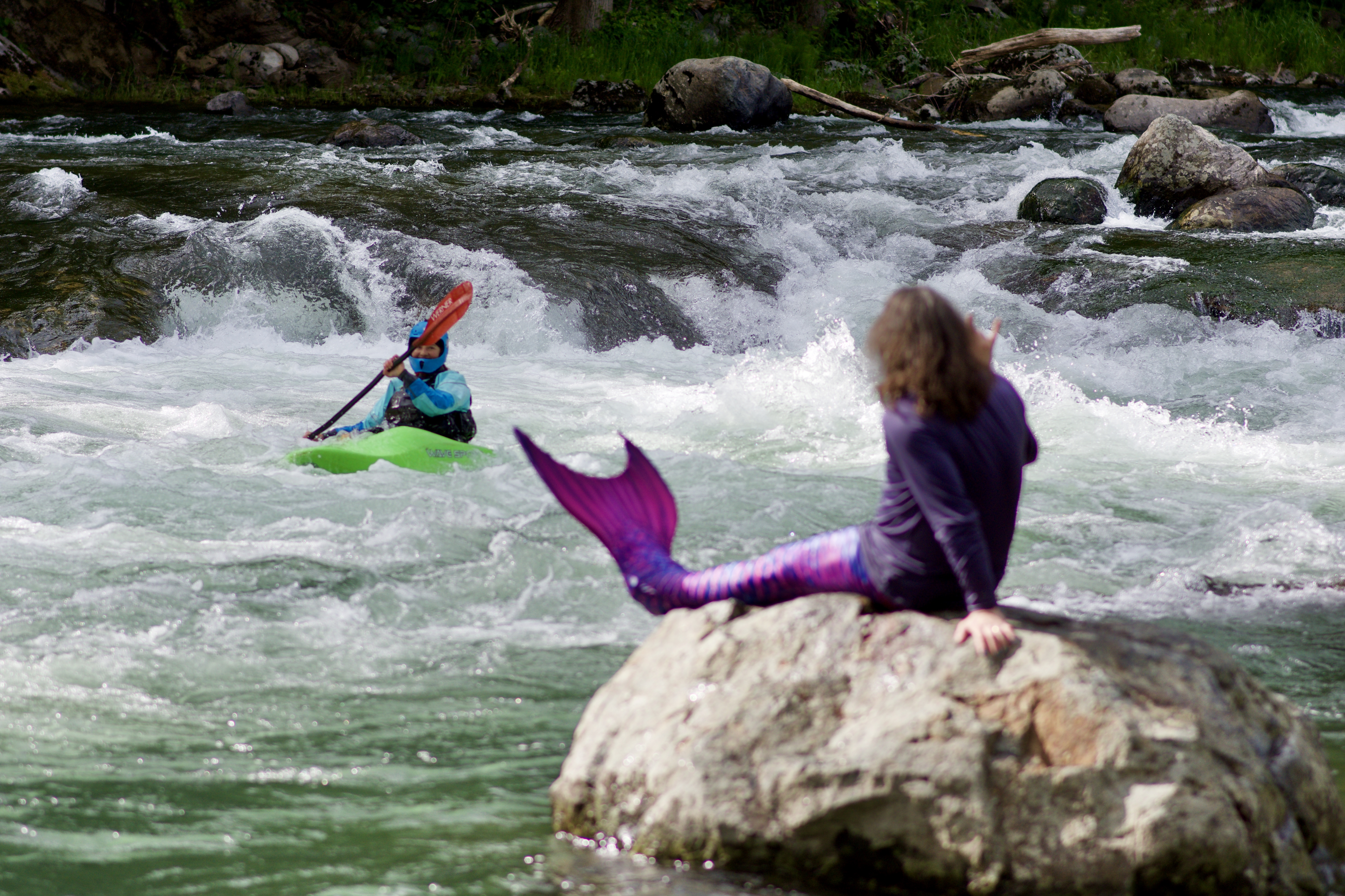Photos of Presence playing as a mermaid, May 15, 2020 at Kanaskat-Palmer State Park near Auburn, WA.
